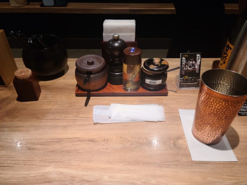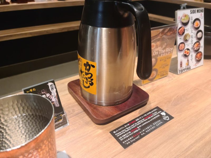 テーブルにスープ割り用のかつおだしが置かれているので麺食べ干す前にスープにちょっと投入してみました。