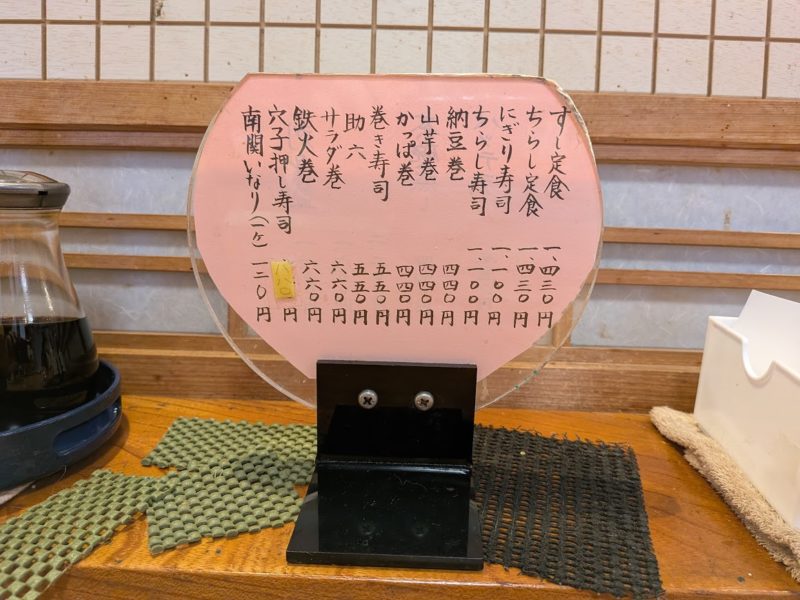夫婦2人でカウンター席に通されて、皆さん注文するというすし定食(1430円)を2人前注文。