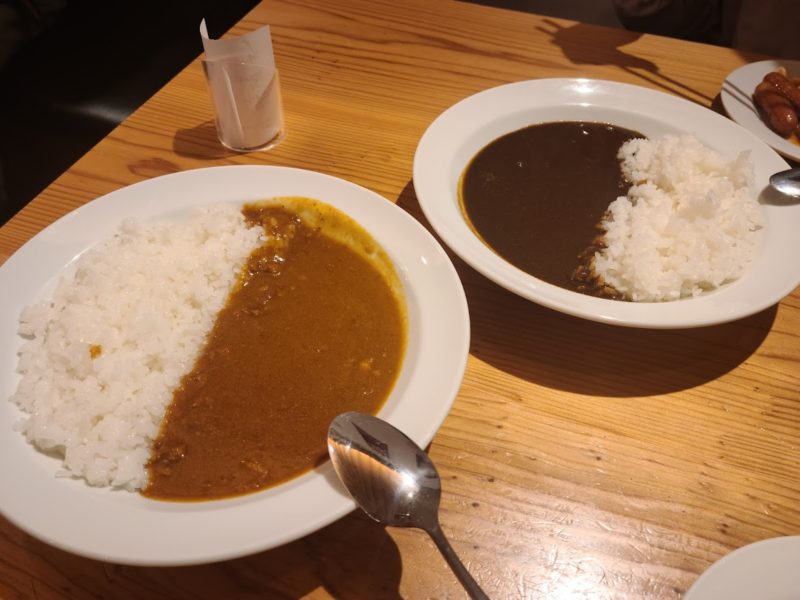 ポークの赤虎カレーとビーフの牛虎カレー。