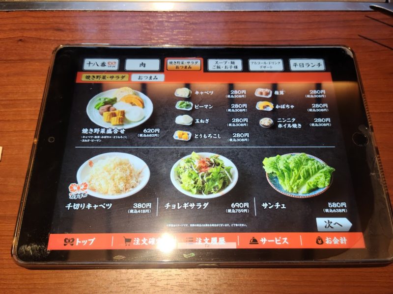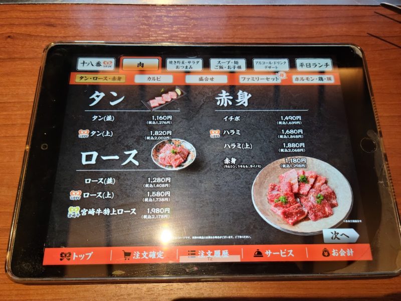 カルビ(??円)と赤身(1298円)。