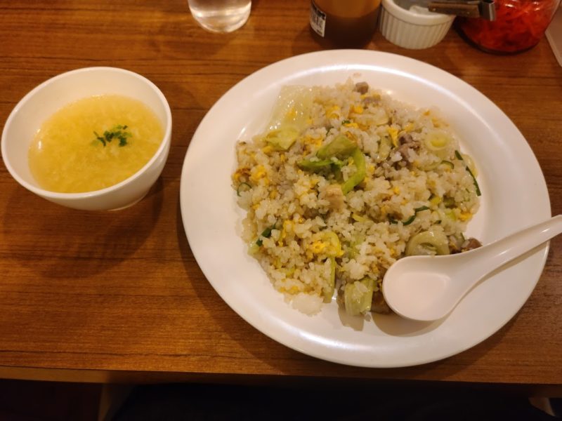 シンプルにチャーハンとスープのセットなので800円はどうかなと考えていたのですが、ご飯の量は茶わん2杯分は軽くあるし、塩味のシンプルな味付けながらおいしいチャーハンなのでやっぱり☆剥奪はなしに決めましたw
