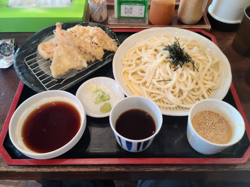 上天ぷらと2種類の出汁でうどんかそばをいただく霧島盛りは初めて食べました。